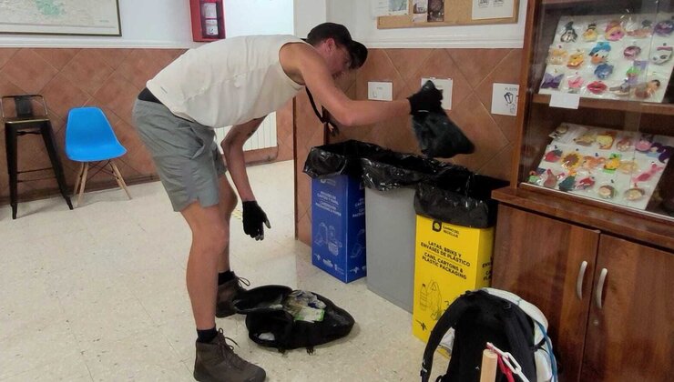 De locals die ik aanspreek om mijn vuilnis mee te ruilen hebben gelukkig genoeg geduld en aandacht, zodat mijn intentie (mensen inspireren en motiveren om hetzelfde te doen tijdens het wandelen én laten zien dat dit werk zéér gewaardeerd wordt) goed overkomt. Op een zondag middag kom ik met 35 graden aan bij een aantal mannen die hout aan het zagen zijn voor de winter. Ze luisteren aandachtig, ik voel de waardering van de mannen, ze willen graag bijdragen aan mijn project en vragen mij wat ik wil hebben (in ruil voor mijn vuilnis). Ik antwoord dat ik dat geheel aan hen overlaat en hij vraagt mij of ik trek heb in een koud biertje. Op een bloedhete zondagmiddag hoefde ik niet lang na te denken over dat antwoord. Voordat ik het wist trek ik een blikje koud bier open op het terras, eet ik een stokbroodje met heerlijke iberico ham, praat ik wat met de 90-jarige oma en voel ik mij helemaal thuis als de kinderen met de kittens aan het spelen zijn. Een heerlijke zondagmiddag bij een warm gezin die mij met open armen ontvingen.