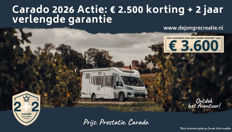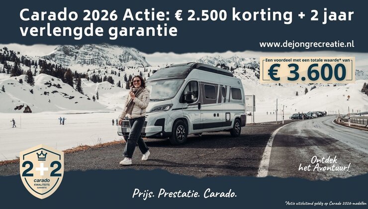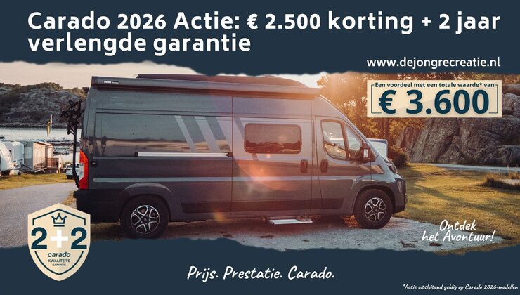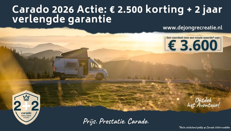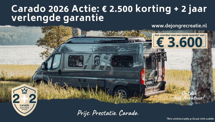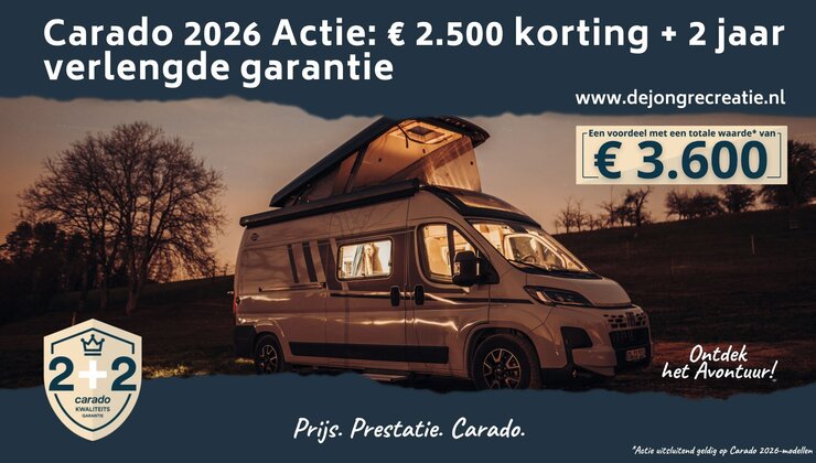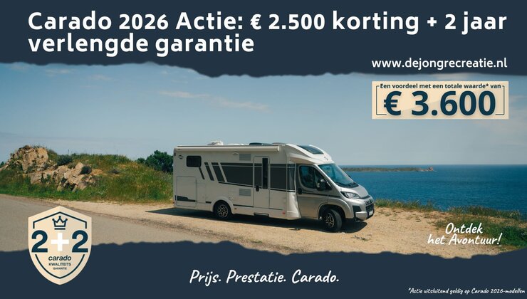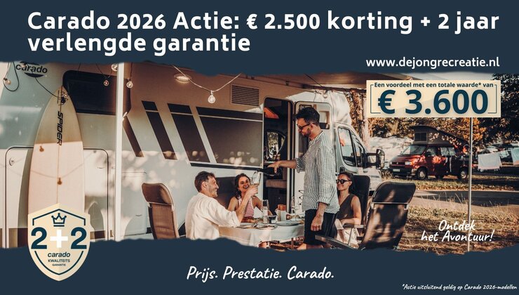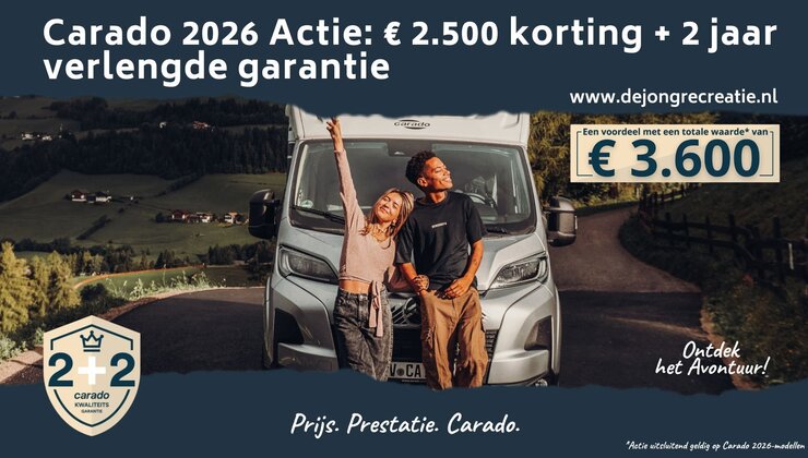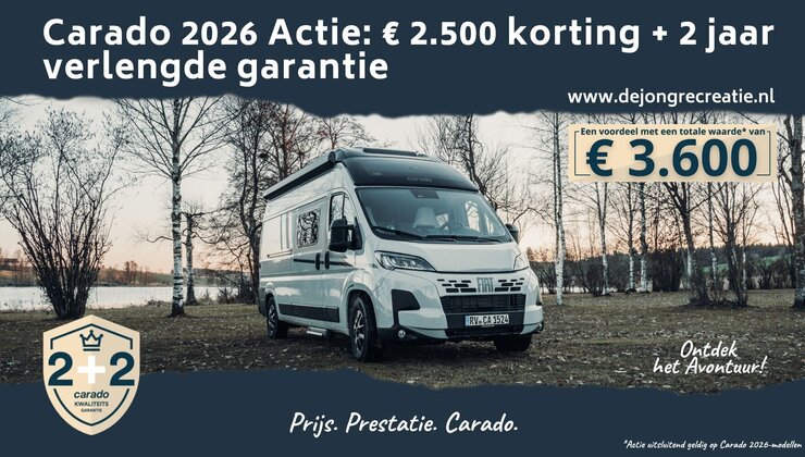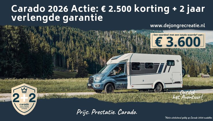 Carado 2026 Actie: € 2.500 Korting + 2 Jaar verlengde Garantie