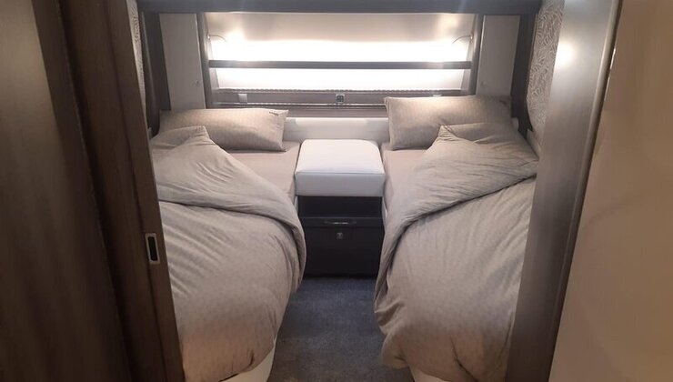 De Fendt caravan heeft aan ruimte geen gebrek. Door zijn breedte van 2.5 meter is de rondzit riant en heeft u ook een ruime doorloop door de caravan. Zo kunt u elkaar gemakkelijk passeren in de caravan, als iemand bijvoorbeeld aan het koken is. Koken in de Fendt Diamant 50 SG 50 jaren edition kunt u ook doen zoals thuis. Met de drie ruime pitten, oven en gril op gas kunt u de masterchef van de camping worden. Ook voor koude gerechten is er ruimte genoeg in de 133 Liter Slimtower koelkast.