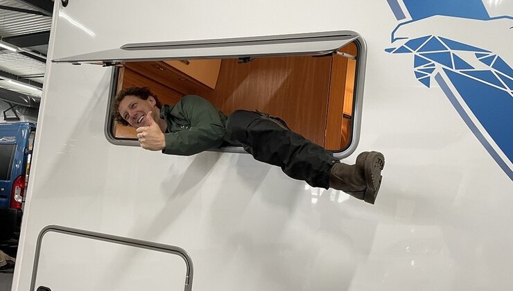 Dinsdag 2 november hadden wij Jochem Meyer te gast in onze showroom. Wat een lol hebben we gehad. Hij had ons uitgekozen om een fotoshoot in onze showroom te doen voor zijn column in 'Kampeerauto' van NKC. Het magazine staat boordevol informatie over reizen met de camper, techniek en alles wat een camperaar wil weten.