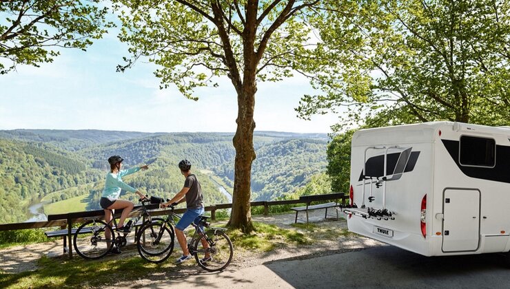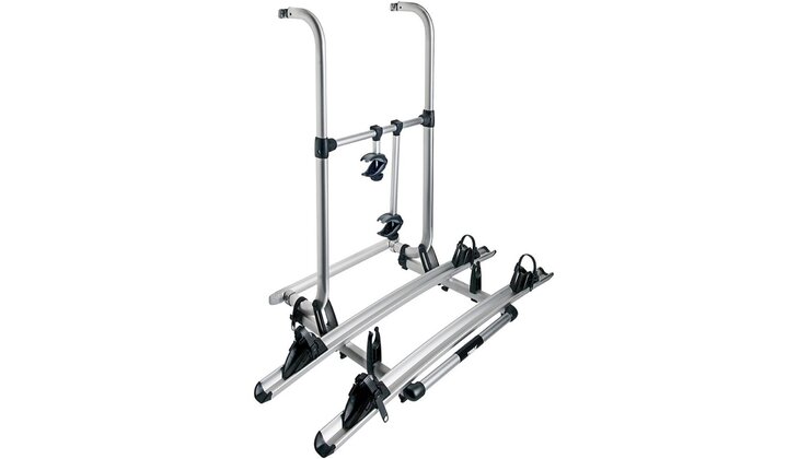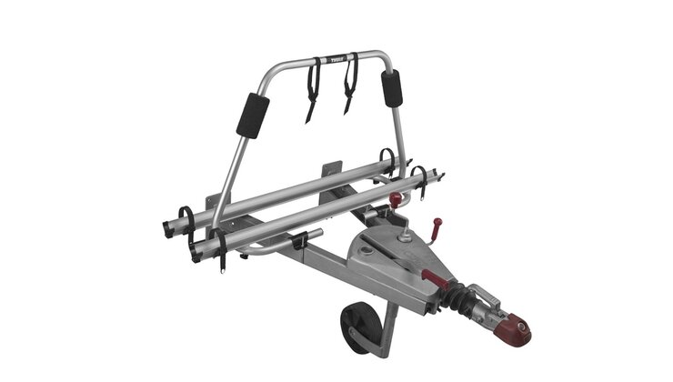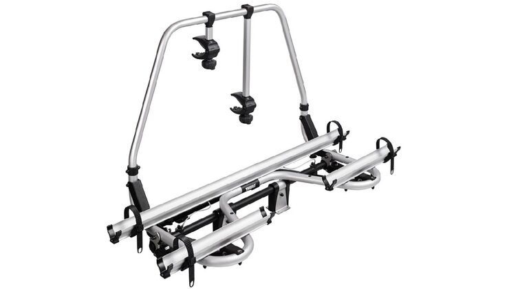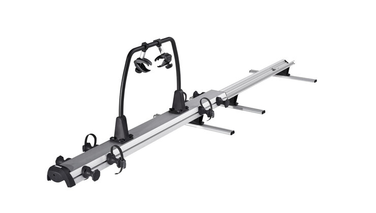 Assortiment fietsdragers achterop campers/caravansDe fietsendrager voor in de garage wordt gemonteerd in de garage(box/ruimte) van een camper of caravan. Dit komt vast niet als een verassing maar is een handige oplossing als u een fietsendrager op uw trekhaak, dissel of achterop de camper of caravan onprettig vindt. Mocht u een grote garage hebben bij uw camper of caravan dan kunnen er wel twee elektrische fietsen in de garage met de Thule Veloslide fietsendrager.