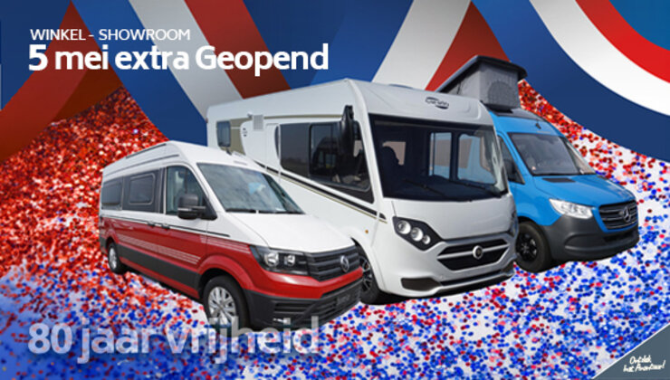 In deze nieuwsbrief leest u over onze aangepaste openingstijden rond Bevrijdingsdag en Hemelvaart, maakt u kennis met een compacte én comfortabele Carado V337 camper, ontdekt u de nieuwste showroommodellen en winkelproducten, én ziet u welke mei-aanbiedingen u niet mag missen. Tot slot presenteren wij de splinternieuwe TEUN Kampeer- & Techniekgids 2025. Scroll mee en ontdek wat er allemaal te beleven is bij DE JONG in de maand mei!