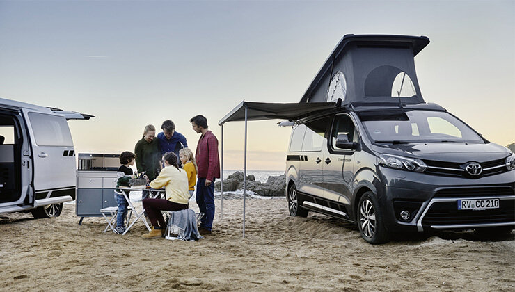 Ook de Crosscamp Flex staat met een speciale "DE JONG 50 jaar Edition" aanbieding in onze showroom. De Crosscamp wordt gemaakt op de zeer sportief uitziende en uiterst comfortabel rijdende Toyota Proace. Deze ruime gezinsauto/compacte buscamper is standaard uitgerust met 5 zitplaatsen en kan uitgebreid worden naar 6 zitplaatsen. Slaapruimte is er voor 4 volwassenen of 2 volwassenen en 2 tot 4 kinderen. De Crosscamp Flex "50 jaar Edition" buscamper zal geleverd worden met Isabella Asa luifel, matrastopper en Bearlock tegen een voordeelprijs.