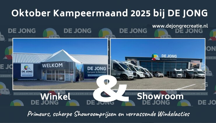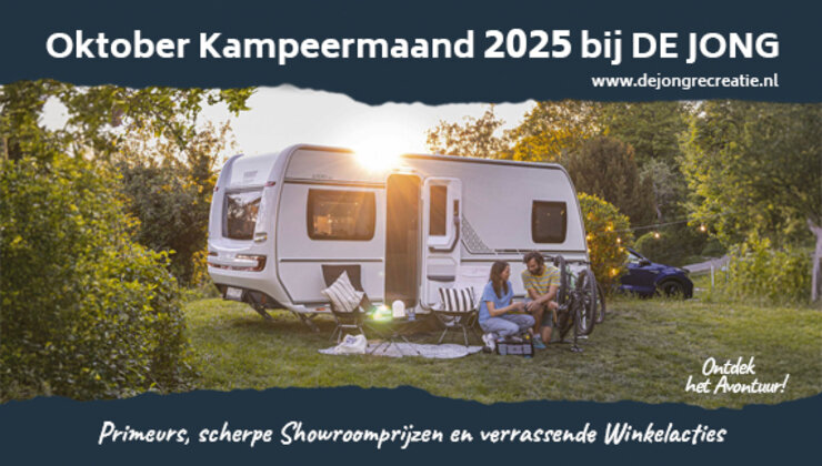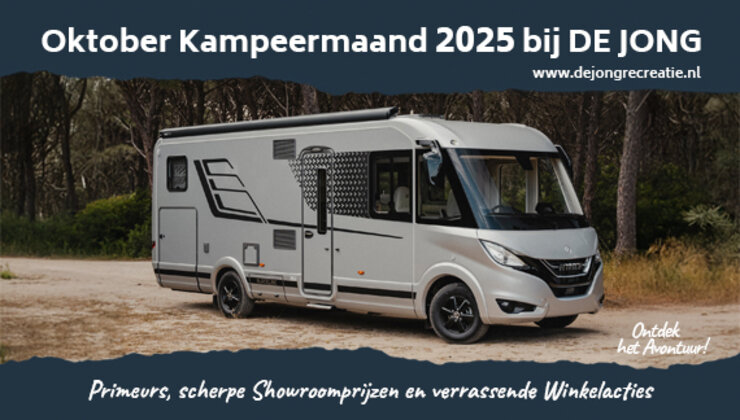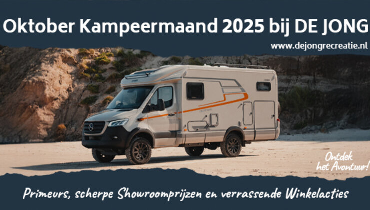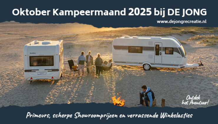 Na een inspirerende beursperiode, waarin onze dealermerken de allernieuwste modellen voor 2026 hebben onthuld, zetten wij de spotlights in oktober volledig op de kampeerwereld. Tijdens de Oktober Kampeermaand van woensdag 1 oktober t/m zaterdag 1 november 2025 draait alles om primeurs, scherpe aanbiedingen en kampeersfeer. Van campers, buscampers en caravans tot een uitgebreid winkelassortiment: u vindt het allemaal onder één dak.