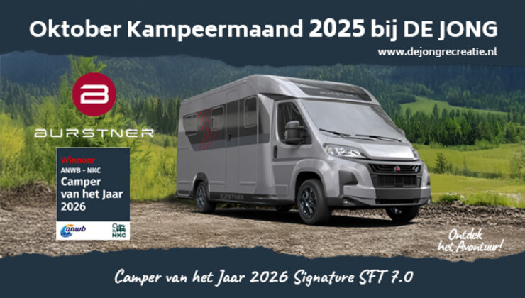 Actueel aanbod EribaOp de Kampeer & Caravan Jaarbeurs werd die officieel gekroond: de gloednieuwe Bürstner Signature SFT 7.0, uitgeroepen tot ANWB/NKC Camper van het Jaar 2026. Deze half-integraal combineert praktische luxe, optimaal comfort en ongekende personalisatiemogelijkheden.