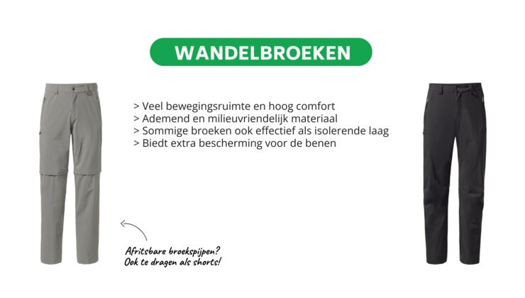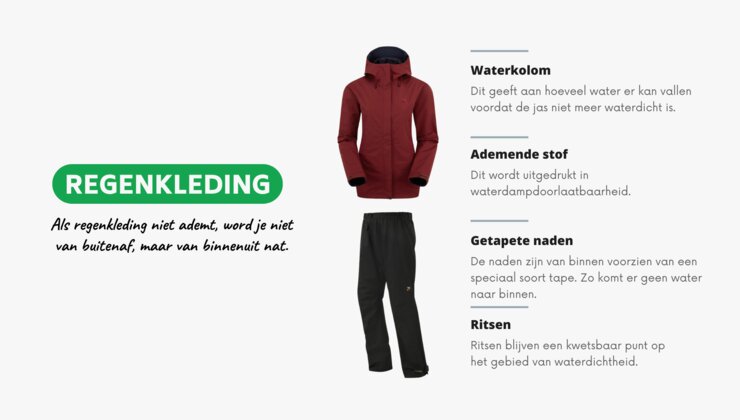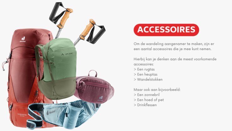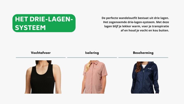 Hiernaast staat een overzicht van basisinformatie. Hierin gaat het over wandelschoenen, wandelsokken, outdoorkleding en regenkleding >>