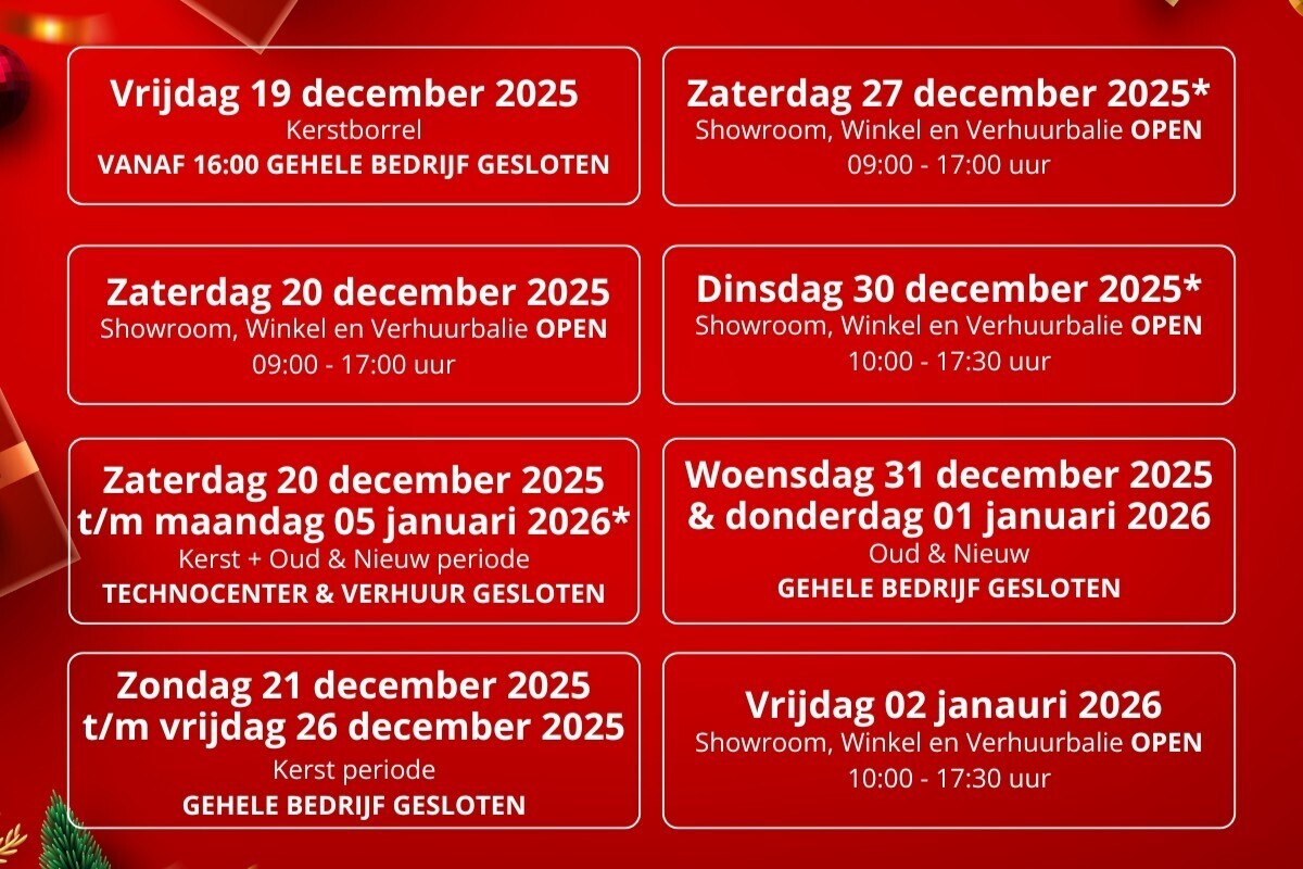 ***Technocenter van vrijdag 19 december 16:00 tot en met maandag 5 januari 2026 gesloten.