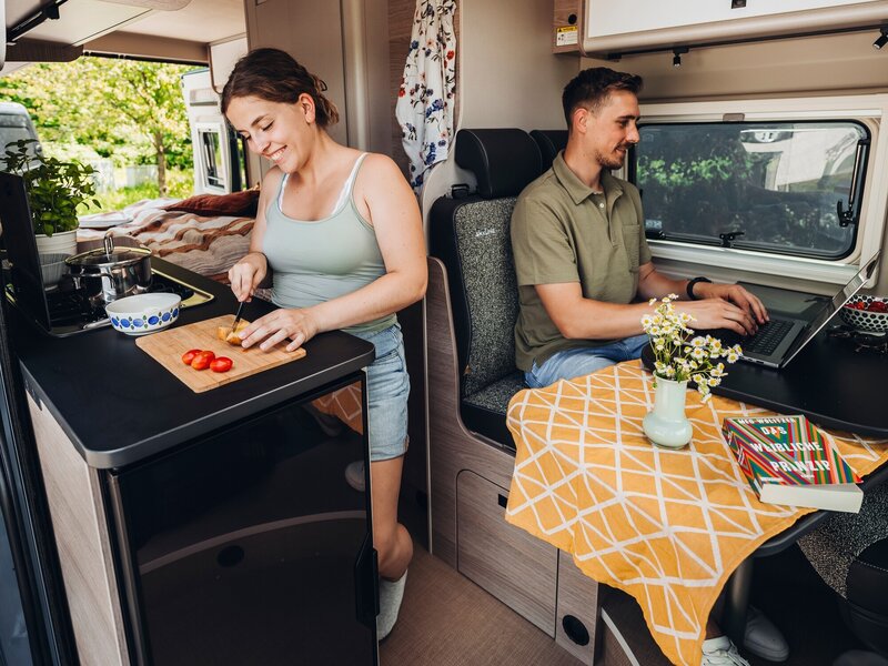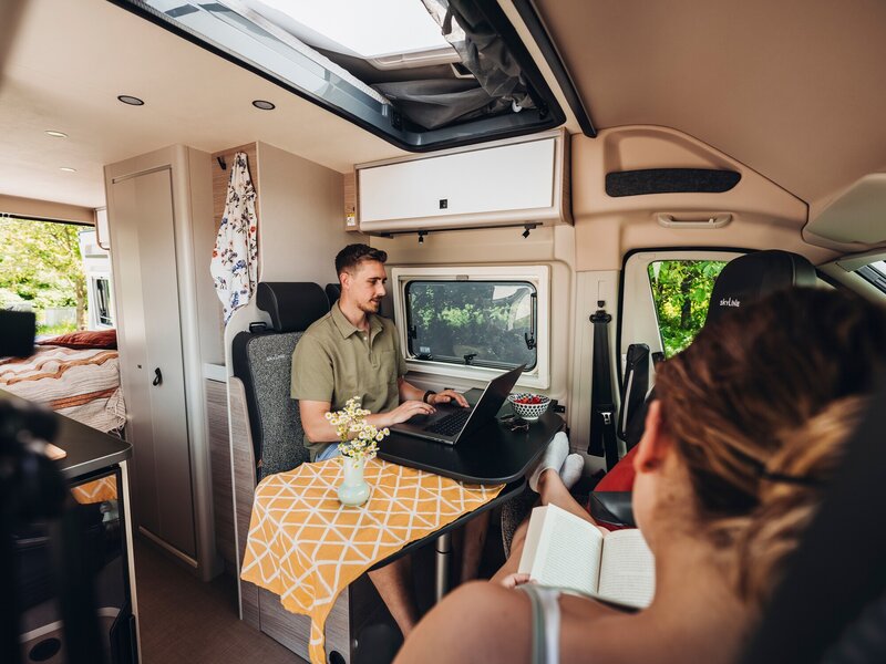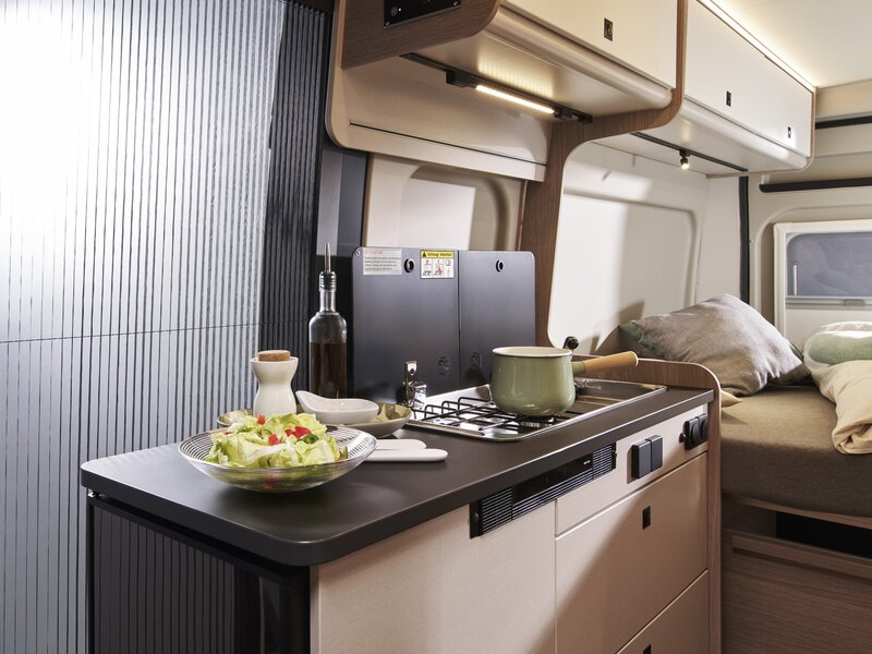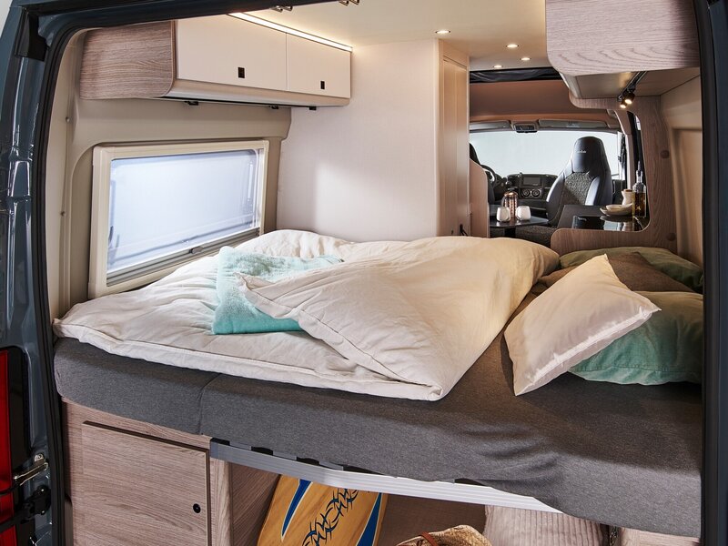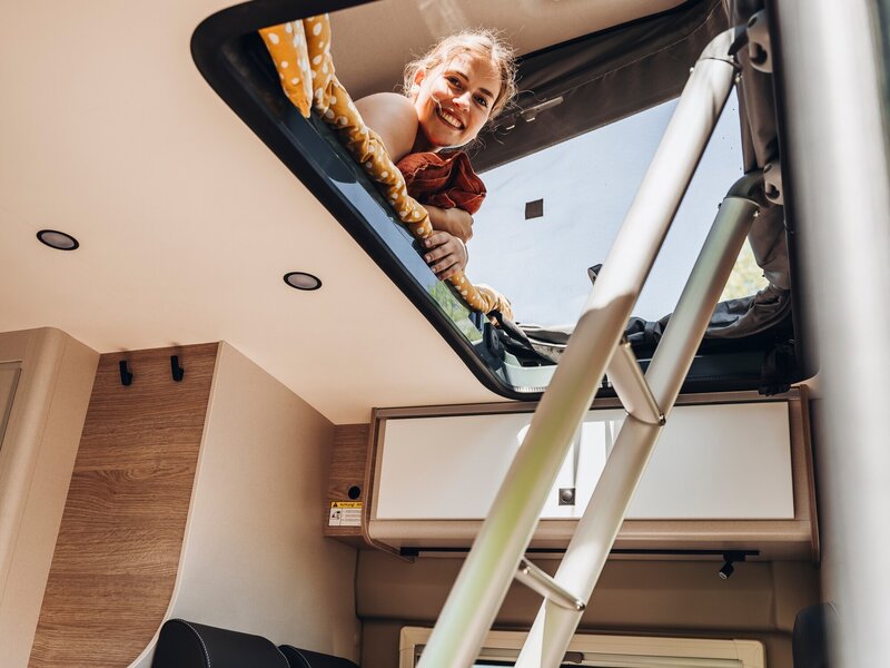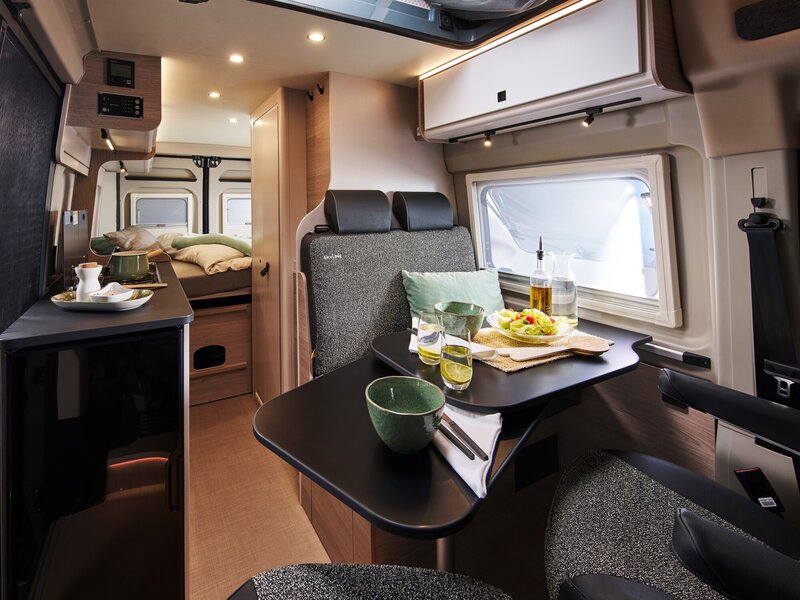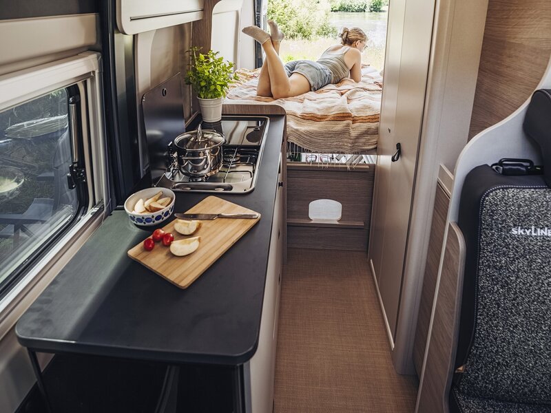 De Campeo SkyLine biedt het beste van twee werelden: het gemak van een compacte buscamper gecombineerd met het ruimtelijke gevoel van een grotere camper. Dankzij het unieke SkyRoof geniet u van licht en uitzicht zoals nooit tevoren. Het grote panoramische dakvenster zorgt voor een overvloed aan natuurlijk daglicht en een heerlijk open sfeer – ideaal voor wie houdt van vrijheid, comfort en een vleugje luxe onderweg.