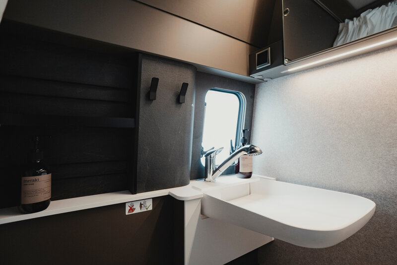 Het exterieur van de Hymer Grand Canyon S Cross Over valt op door zijn robuuste en stoere uitstraling. De unieke CrossOver styling, met opvallende grafische details en ruige look, onderstreept het avontuurlijke karakter van deze camper. Bovendien is de buitenkleur zorgvuldig gekozen om weersinvloeden te weerstaan en de camper extra bescherming te bieden tijdens ruige off-road ritten.
