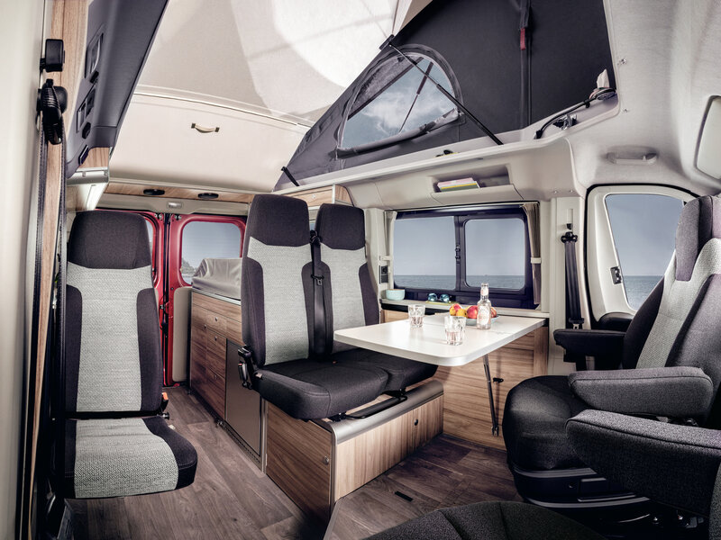 Het model zonder badkamer, de HYMER Sydney, biedt u nog meer flexibiliteit met nog meer plaats. Het voertuig bekoort dankzij een stahoogte van max. 2,65 meter en onderscheidt zich door een flexibel zitconcept met 3, 4 of 5 zitplaatsen. Bovendien kunt u de opbergruimte dankzij uitneembare meubels vergroten. Door het mobiele toilet bent u onderweg nog onafhankelijker. In de stad of op reis is de HYMER Sydney altijd een betrouwbare en comfortabele begeleider.