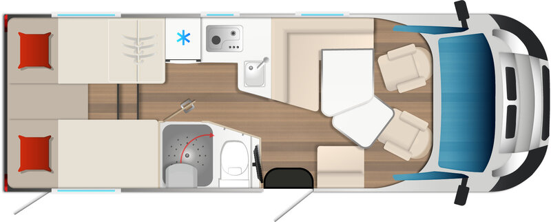 Dankzij het flexibele interieur en de ruime indelingsopties, is de Campeo TD een ideale camper voor zowel stellen als gezinnen. Het moderne en gezellige interieur, compleet met praktische keuken en royale zitgroep, zorgt ervoor dat u zich overal thuis voelt.