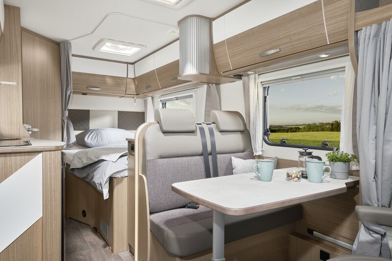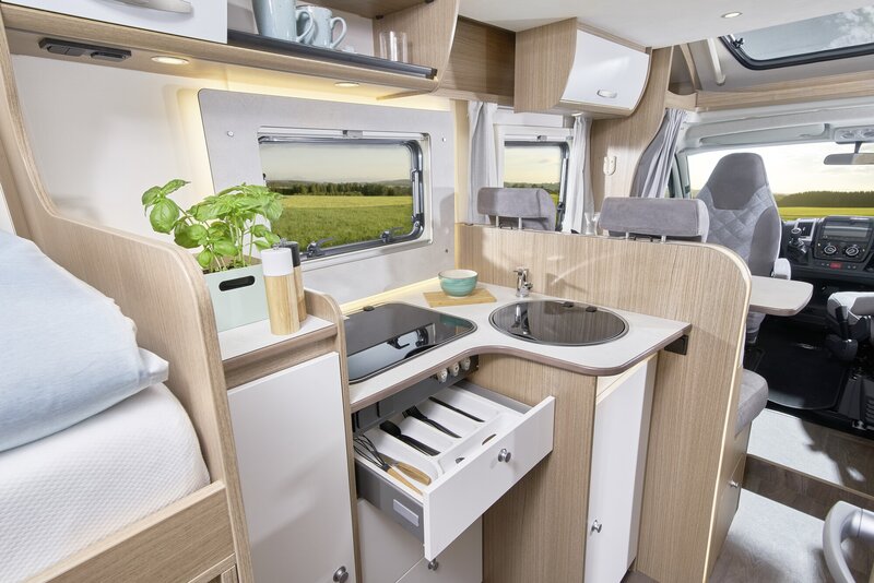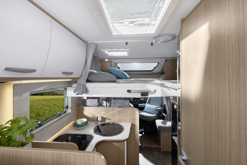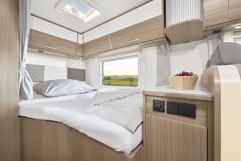 Heerlijk Slapen: In een kampeerauto van Carado slaapt u als een roos. En u wordt goed uitgerust wakker: De hoogwaardige matrassen met afneembare hoezen zorgen voor een hoog slaapcomfort. Het optionele hefbed is met Clima-Plux-elementen uitgerust. Daarnaast zijn de twee enkele bedden achterin ook optioneel om te bouwen tot een tweepersoonsbed (210 x 168 cm) en is er een optionele bedombouw bij het zitgedeelte.