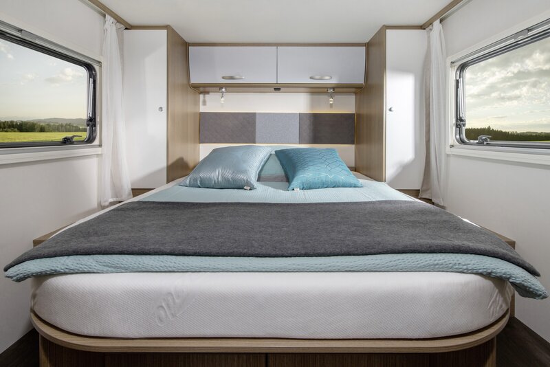 Heerlijk Slapen: In een kampeerauto van Carado slaapt u als een roos. En u wordt goed uitgerust wakker: De hoogwaardige matrassen met afneembare hoezen zorgen voor een hoog slaapcomfort. Het optionele hefbed is met Clima-Plux-elementen uitgerust. Daarnaast is er ook een optionele bedombouw bij het zitgedeelte.