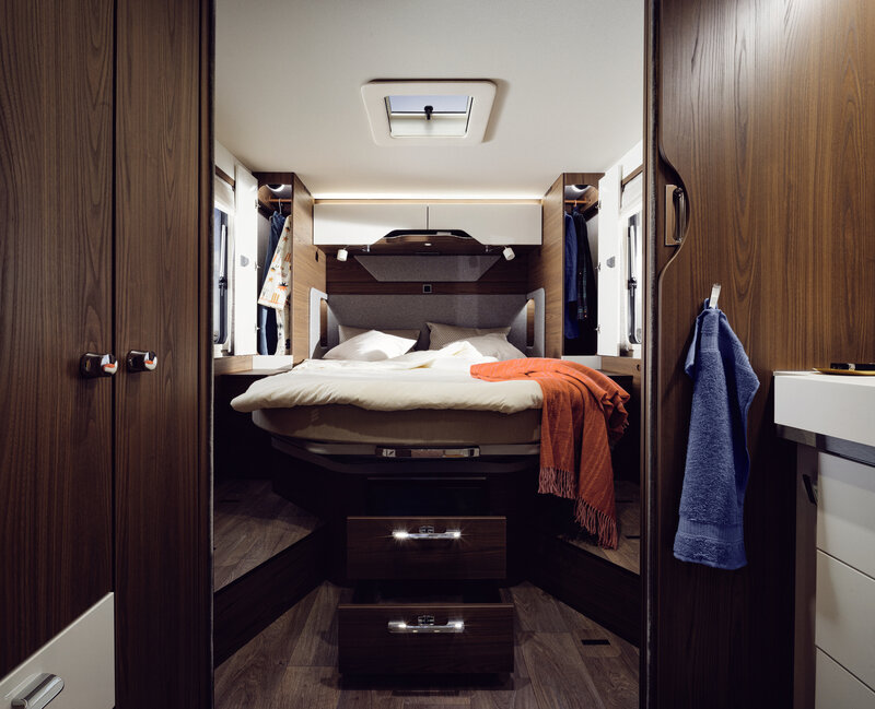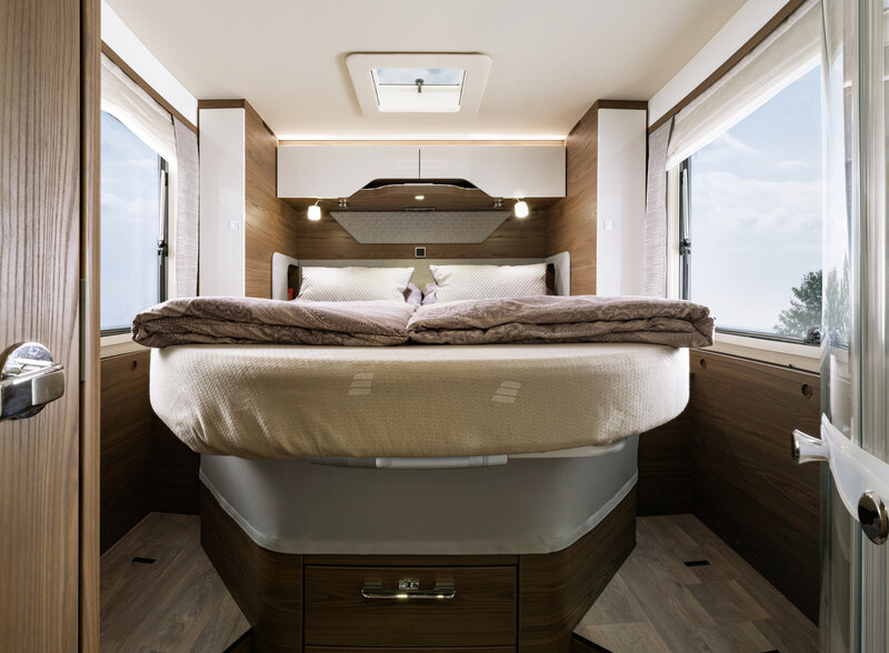 De Hymer B-klasse MasterLine I 790 heeft standaard een prachtig queensbed en een tweepersoons hefbed. De ombouwbare zitgroep kan zorgen voor de vijfde slaapplaats. Er is een toiletruimte met aan de overkant een doucheruimte, waar dus tegelijkertijd gebruik van gemaakt kan worden. Dat is nog eens luxe! In de fijn te gebruiken keuken is een maaltijd zo op tafel gezet. De zeer ruime zitgroep in het midden/voorin zorgt ervoor dat het vakantieleven in de Hymer B-Klasse MasterLine I 790 wel heel comfortabel is. Elk avontuur wordt bijzonder met de Hymer B-Klasse Masterline I.