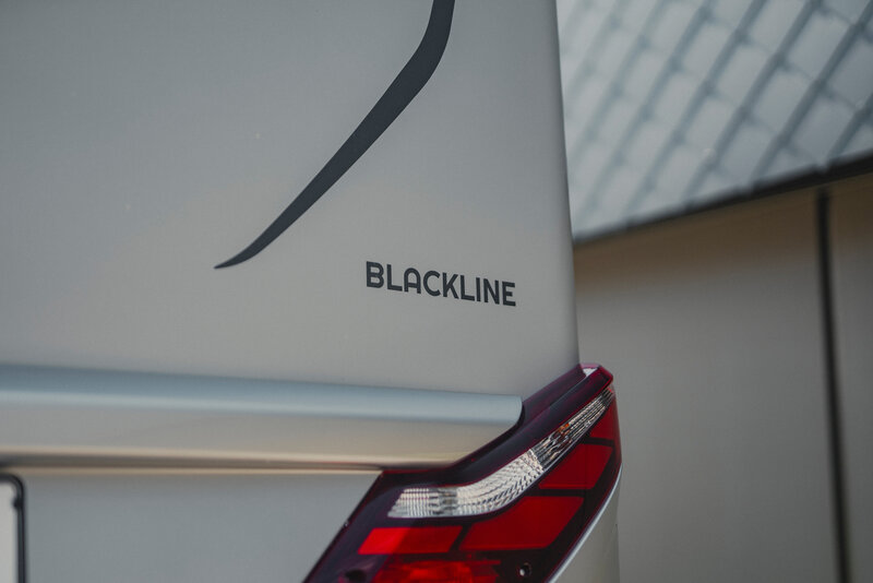 Een van de belangrijkste kenmerken van de BlackLine is het opvallende exterieurdesign. De camper heeft een sportieve uitstraling dankzij de "Obsidian Black" cabine en "Crystal Silver Metallic" lakwerk, met dynamische zwarte accenten en zwarte 16" Borbet-velgen. Deze combinatie geeft de camper een elegante, moderne look, die verder wordt aangevuld met een zwarte markies en designgrafieken. Deze bijzondere uitvoering van de B-MC-I is een blikvanger op elke camping en onderweg, met een design dat stijl en functionaliteit combineert.