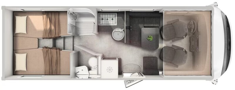 De Hymer B-MC-I 680, voluit Hymer B-klasse ModernComfort I 680. De Hymer B-MC-I 680 is een zeer royale indeling. Er zijn twee eenpersoonsbedden achterin de camper. Het hefbed voorin de camper en de ombouwbare zitgroep in het midden zorgen voor 4 - 5 slaapplaatsen in deze integrale camper. In de B-MC-I 680 zit een aparte doucheruimte. Zo kunt u erg comfortabel in uw eigen camper van een douche gebruik maken. De toiletruimte zit tegenover de doucheruimte. Naast de toiletruimte is een koelkast te vinden. Tegenover de koelkast is de keuken aanwezig. Zo is het dus mogelijk om in de Hymer B-MC-I 680 een heerlijke vakantiemaaltijd te bereiden. Met 3 - 5 personen is het fijn vertoeven in de zitgroep in het midden/voorin de camper. De Hymer B-MC-I 680 zorgt ervoor dat u zich thuis voelt, geeft u absoluut een vakantiegevoel en laat u dromen van de mooiste bestemmingen.
