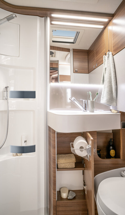 De Hymer B-MC-I 690 geeft u pas echt een royaal gevoel. Het Queensbed achterin de camper, het hefbed en de ombouwbare zitgroep zorgen dat 4 -5 personen heerlijk kunnen dromen tijdens de mooie reizen met de B-MC-I 690. Een luxueuze camper douche maken deze integraal pas echt comfortabel. De toiletruimte tegenover de douche zorgen voor gemak en in de keuken die zich naast de douche bevind, is een maaltijd zo bereid. Er is ook een koelkast aanwezig in deze integrale camper. Zo bent u dus altijd voorzien van een koud drankje. Hier kan dan heerlijk van genoten worden in de zitgroep. Door de draaibare bestuurdersstoelen kunnen er 3 - 5 personen van zitplaats worden voorzien. Met de Hymer B-MC-I voelt u zich thuis, krijgt u absoluut een vakantiegevoel en kunt u dromen van de mooiste bestemmingen.