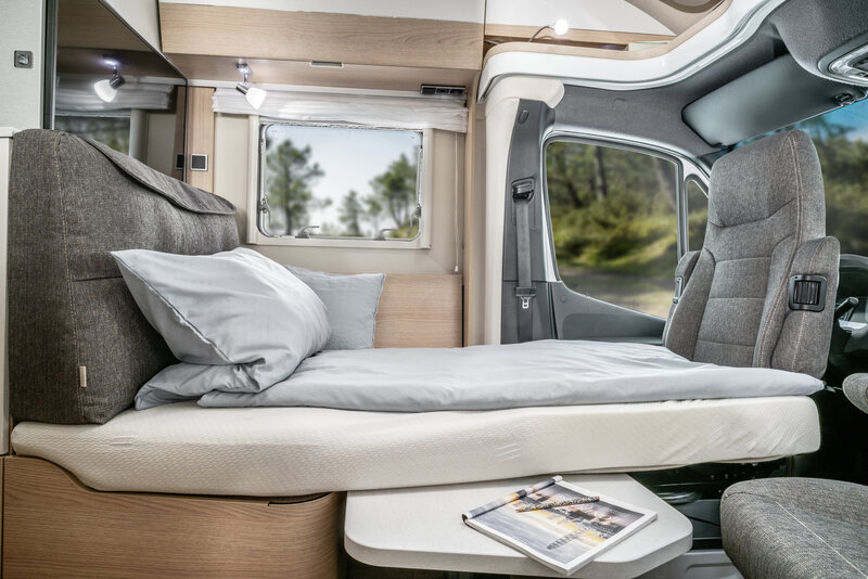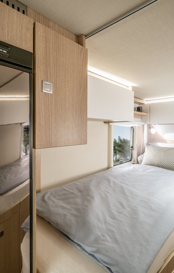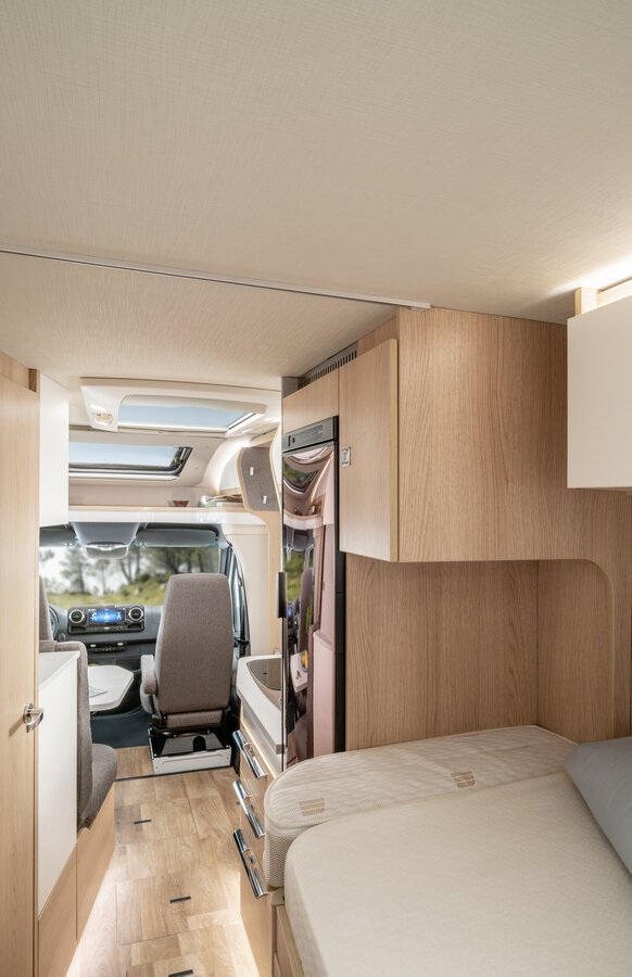 De Hymer B-MC-T 680 heeft twee eenpersoonsbedden achterin de camper. Voorin/midden is de zitgroep om te bouwen tot ombouwbed. Het hefbed zorgt ervoor dat er 2-5 slaapplaatsen zijn in de B-MC-T 680. In deze half integraal zit een aparte doucheruimte. Naast de doucheruimte is de keuken te vinden. Tegenover de douche is de toiletruimte te vinden. Tegenover de keuken vindt u de koelkast. De royale zitgroep zorgt ervoor dat u optimaal kunt genieten van de Hymer B-MC-T 680. Zo onderscheidt de B-MC-T serie zich door de uitgekiende technologie, uniek comfort en schitterend design. De Hymer B-MC-T is gewoonweg een etappe vooruit.