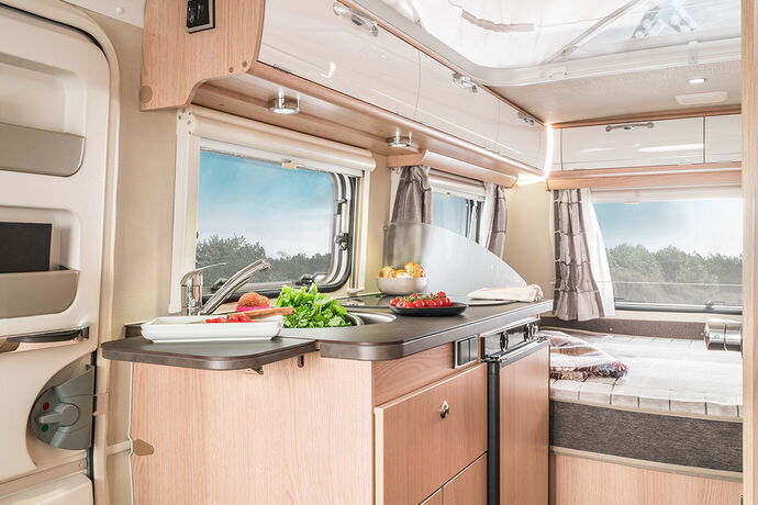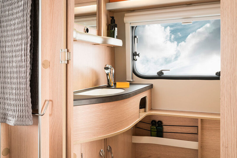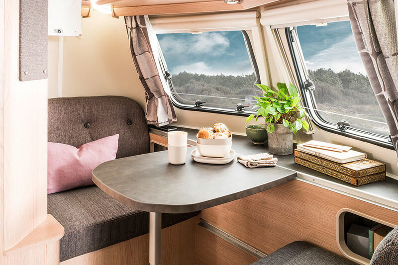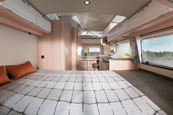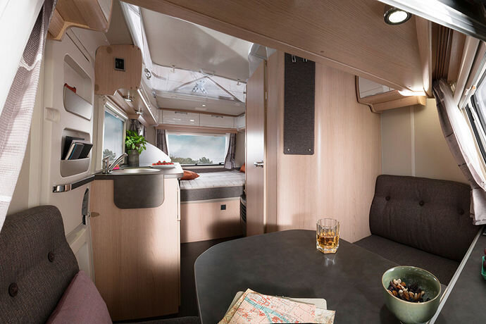 Al met al maakt dit de vakantiereis met deze unieke reispartner veiliger, zuiniger en eleganter. Het exterieur van de caravan is gemaakt van glad aluminium en het versterkte hefdak is gemaakt van hagelbestendig polyester.