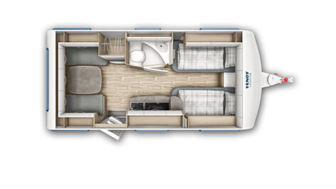 De Fendt Bianco Selection 465 TG heeft achterin de caravan de zitgroep zitten. In het midden bevinden zich de keuken en toiletruimte. Er zijn twee eenpersoonsbedden voorin de caravan. De zitgroep is om te bouwen tot tweepersoonsbed. Dit brengt het maximaal aantal slaapplaatsen op 4. De caravan is 7,03 meter lang en 2,32 meter breed.