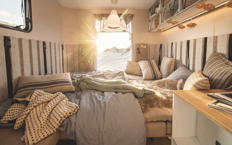 Het interieur van de Hobby Beachy straalt eenvoud en rust uit, dankzij de lichte houttinten, natuurlijke materialen en een open look and feel, sluit de caravan perfect aan bij het strandthema. Zo voelt de Beachy zich snel thuis op elke kampeer locatie. Het interieur is minimalistisch maar stijlvol, waardoor de Hobby Beachy een zeer fijne plek is om te ontspannen. Of u nu aan de kust kampeert, geniet midden in de natuur of vertoeft op een camping, de Beachy zorgt voor een sfeervol vakantiegevoel.
