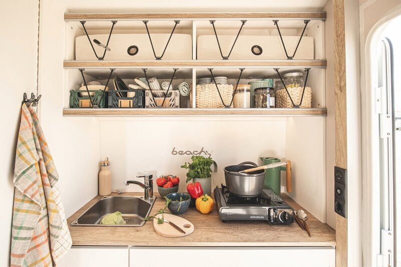 De Beachy caravans zijn ideaal voor reizigers die van avontuur houden. Dankzij het lichte gewicht en de compacte afmetingen zijn ze gemakkelijk te trekken met verschillende voertuigen en snel op te zetten op elke kampeer locatie. Het praktische ontwerp biedt alle basisvoorzieningen voor een comfortabele vakantie, met genoeg opslagruimte voor de kampeerspullen, surfplanken, campingstoelen en nog veel meer voor uw ideale reis.