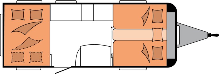 U kunt heel veel extra meenemen, door de combinatie van gewichtsbesparing en het lichte onderstel. De Hobby De Luxe is de ideale gezinscaravan. Natuurlijk kunt u uit de 15 indelingen ook kiezen voor een tweepersoons variant. U heeft de keuze uit enkele- of twee persoons bedden. Nieuw is de indeling met een luxueus queensbed of éénpersoonsbedden achterin en een gezellige hoekzitgroep voorin. Opvallend is bij deze varianten dat de douche apart is van de was/toiletruimte
