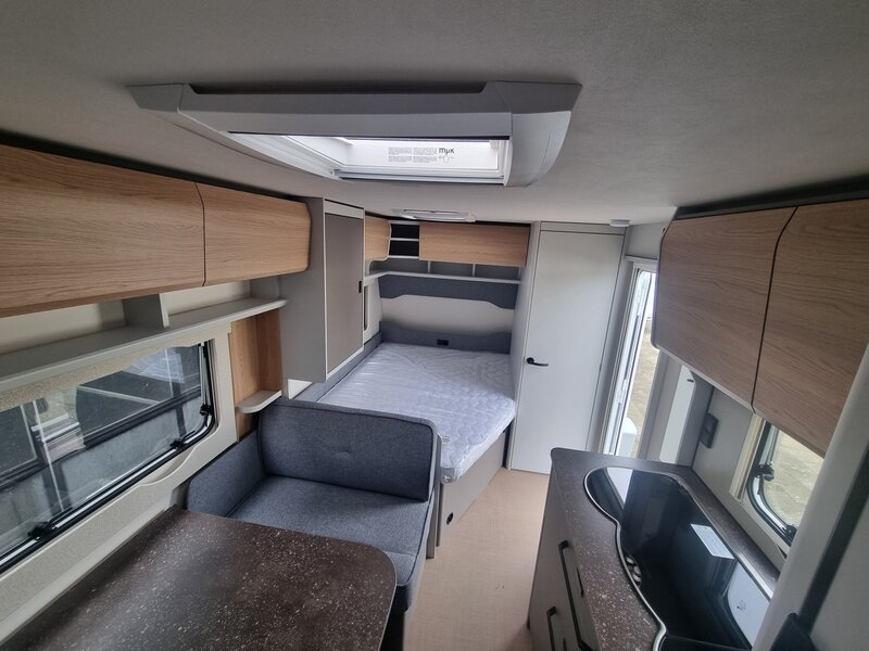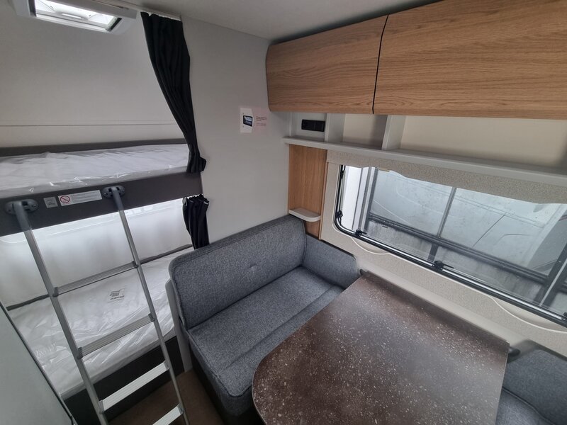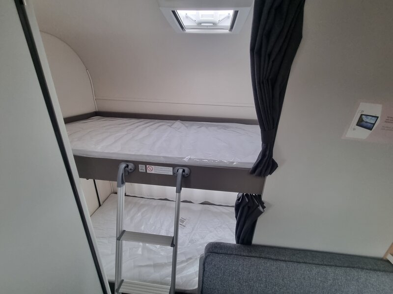 Ideaal voor gezinnen die luxe willen zonder concessies biedt de 480 TK B66 een ruim leefgedeelte, een praktische kinderzit-/slaapopstelling, en een comfortabel tweepersoonsbed voor maximaal slaapgemak.