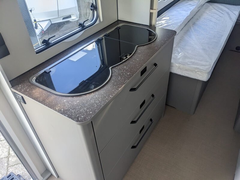 * Vloerverwarming: De elektrische vloerverwarming zorgt ervoor dat de caravan nooit koud wordt.