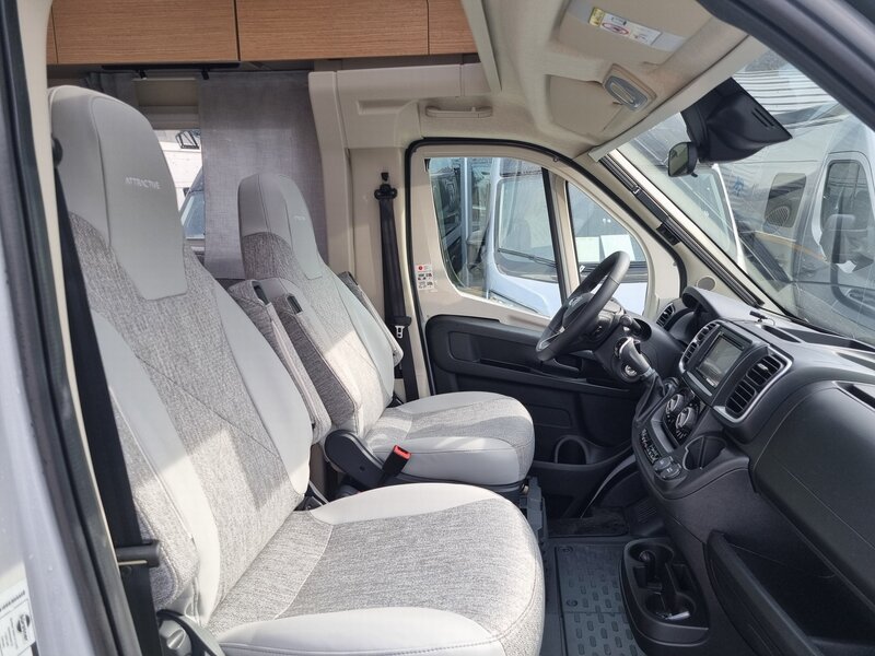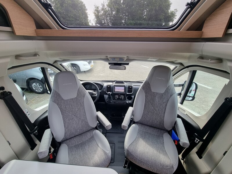 • Afhankelijk van het totale gewicht van het aantal mee te reizen personen en het gewicht aan extra’s en bagage kan deze camper geregistreerd worden op een Wettelijk Totaal Gewicht F2 van 3.500 Kg (rijbewijs B) of 3.850 kg. (rijbewijs c of C1) Vraag onze verkoopadviseurs om meer info.