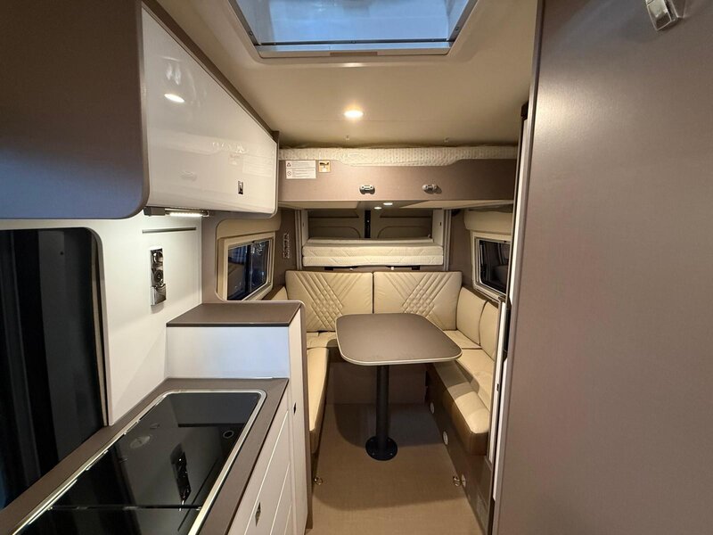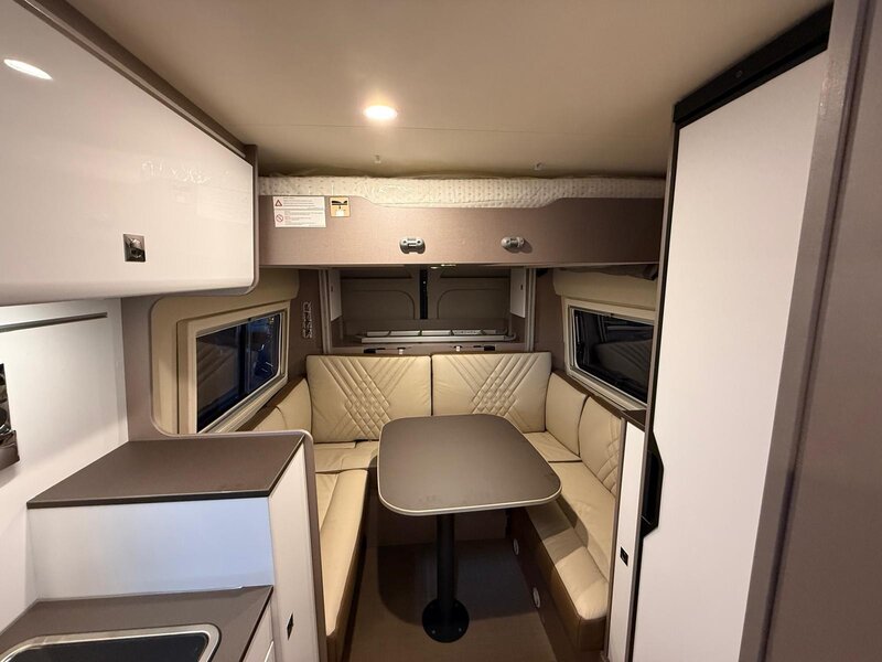 De Eliseo 644 is luxe en apart en biedt iets wat niet veel bus campers aanbieden. Een heerlijke rond zit ! De ontwerpers van Bürstner slaagde er in om wel een zeer comfortabele rond zit in deze Eliseo te creëren. Boven de rondzit is een zeer comfortabel elektrisch bedienbaar hefbed die zover naar beneden kan dat je zeer gemakkelijk instapt. Ook is de douche ruimte echt royaal zoals men maar weinig ziet in buscampers. Naast al deze praktische zaken is de Eliseo 644 luxe, modern en stijlvol. Deze luxe wordt versterkt door de opties en onderstaande pakketten welke op deze camper zijn mee besteld.