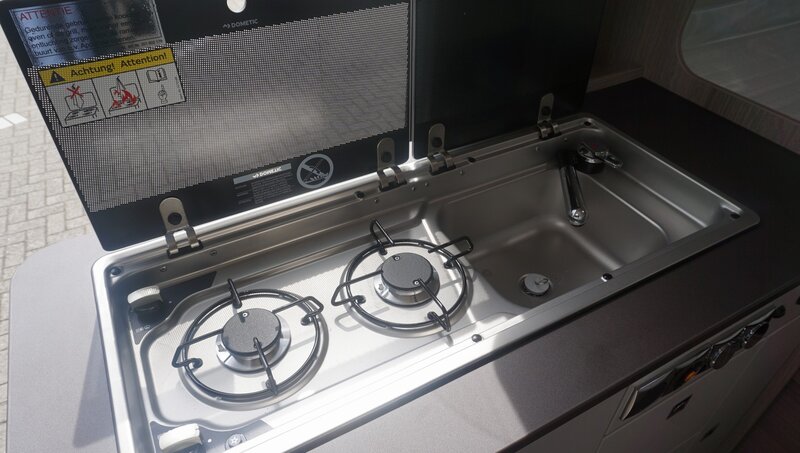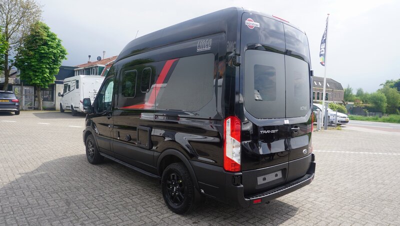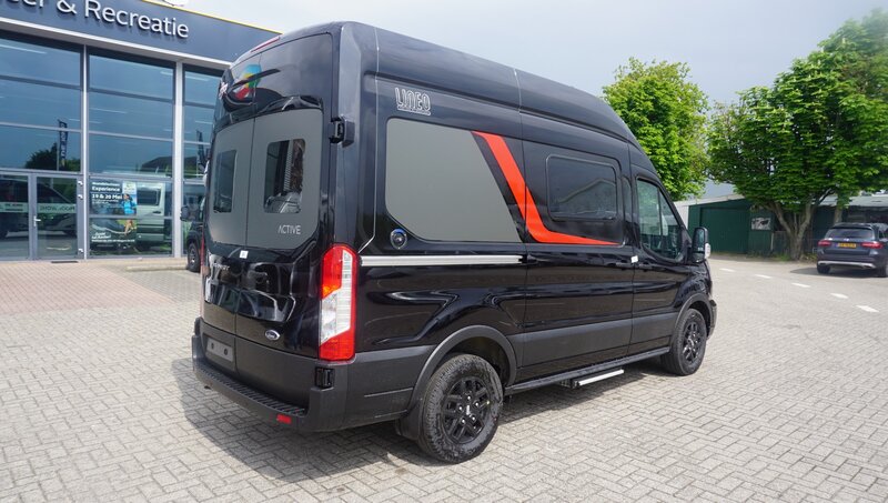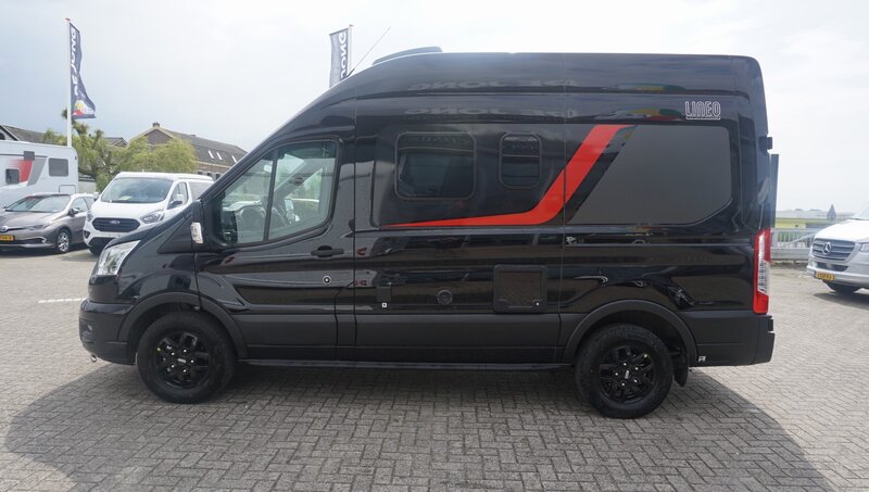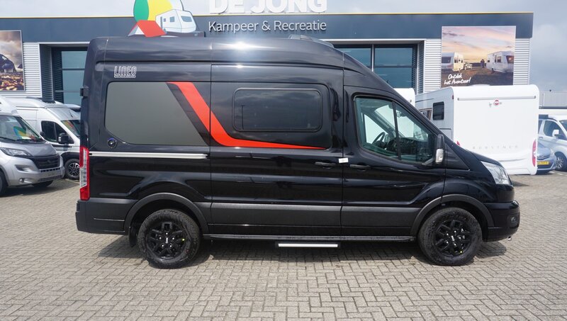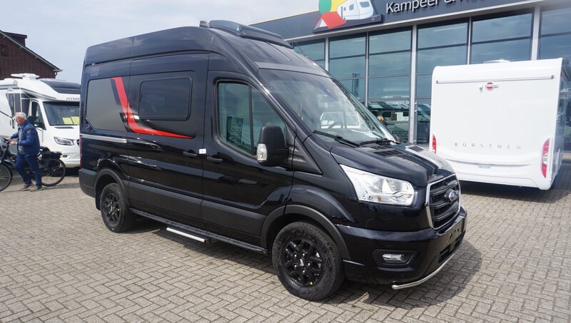 • Stoer Uiterlijk: De metallic zwarte buitenzijde geeft deze camper een krachtige uitstraling, perfect voor avontuurlijke reizen.