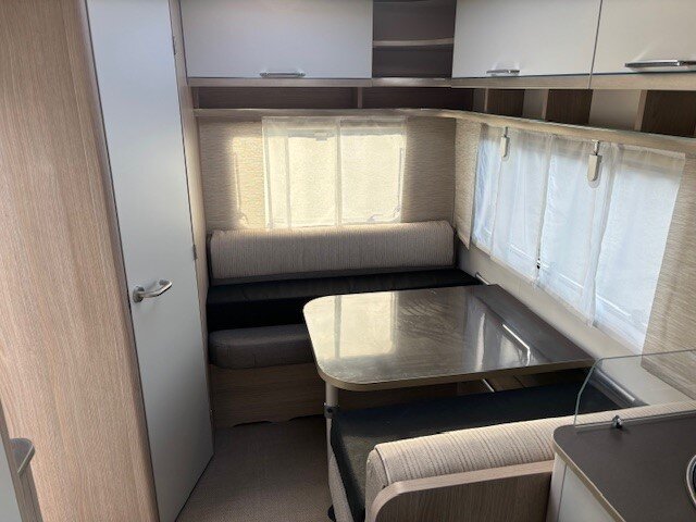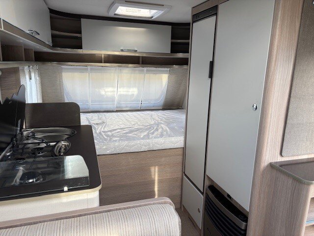 Deze compacte Bürstner Premio 395 TS biedt alle comfort die je van een moderne caravan mag verwachten: een gezellige treinzit, een ruim keukenblok met drie grote lades, grote koelkast en een groot dwarsbed. Uiteraard mag een wasruimte met toilet niet ontbreken om het plaatje compleet te maken. Het compacte ontwerp maakt het de perfecte reisgenoot om lekker mee op reis en vakantie te gaan.