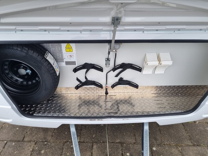 Massa rijklaar is inclusief basisuitrusting (Gevulde watertank, 1 lichtgewicht gevulde gasfles en electrakabel.). Het gewicht van extra opties dient bij het rijklaargewicht opgeteld te worden en is voor getoonde voertuig mogelijk aangehgeven onder rijhklaargewicht inclusief opties en accessoires.