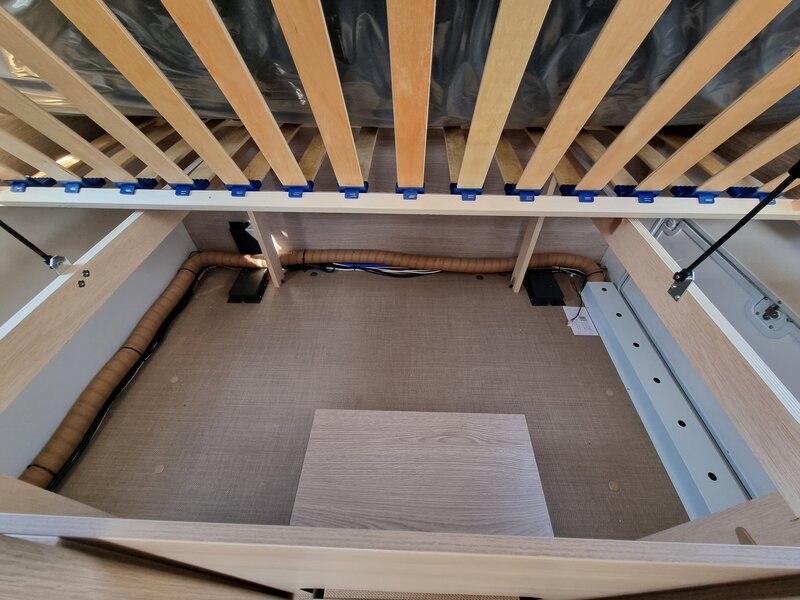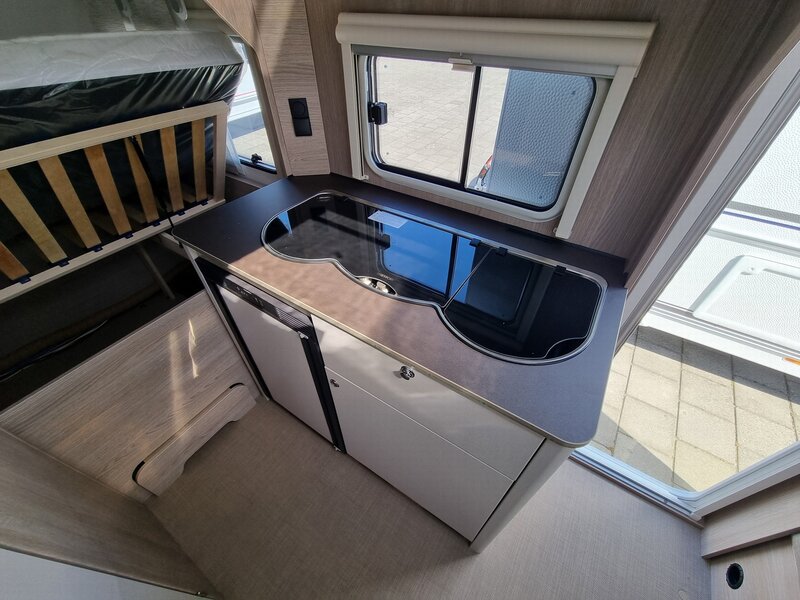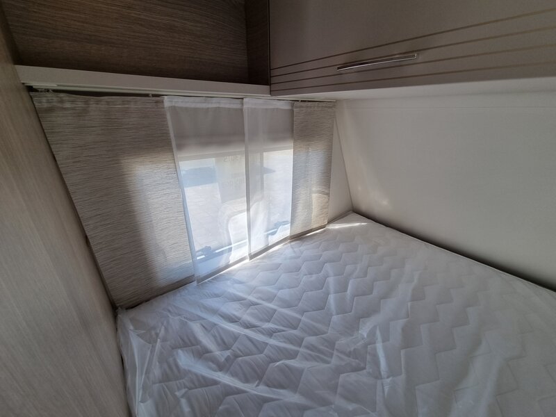 Standaard uitgevoerd met koudschuimmatrassen voor een comfortabel en temperatuurregulerend resultaat op die hete zomernachten. Dit model is uitgebreid met twee pakketten van Burstner.