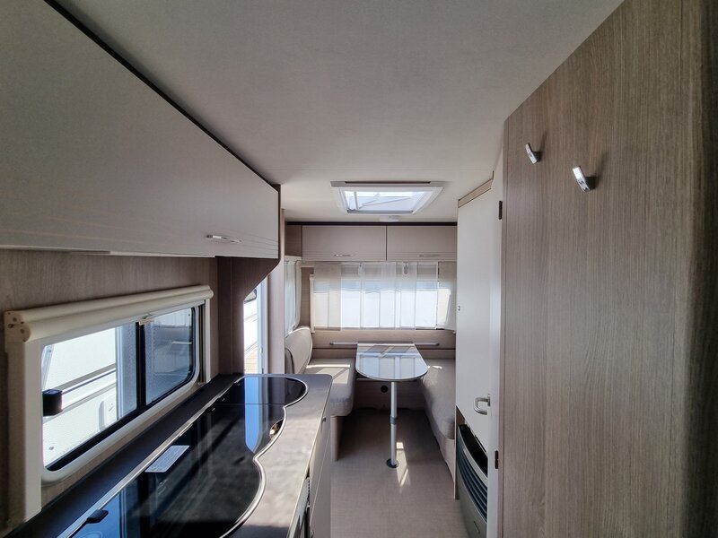 Deze zeer lichte caravan heeft met een dwarsbed en ruime treinzit meer dan genoeg ruimtebeleving binnen. Hij is in een handomdraai om te bouwen naar een slaapgelegenheid voor maar liefst 4 personen. Voorzien van een goede hangkast, ruim keukenblok met grote lades en een praktische badkamer.