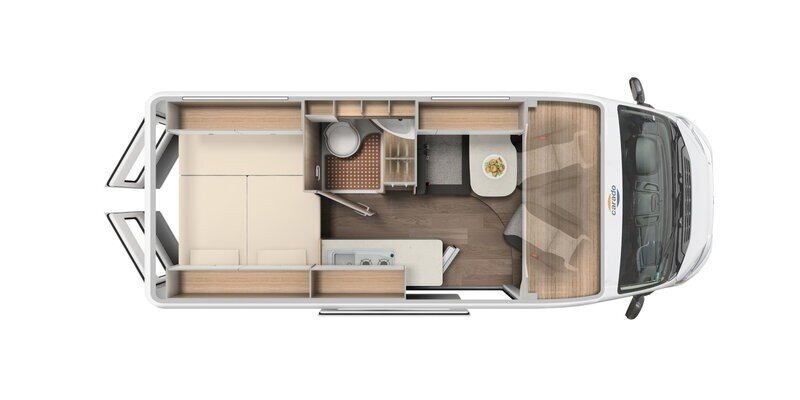 In nieuw staat verkerende jonge occasion Carado CV 600 met automaat en slaapdak.