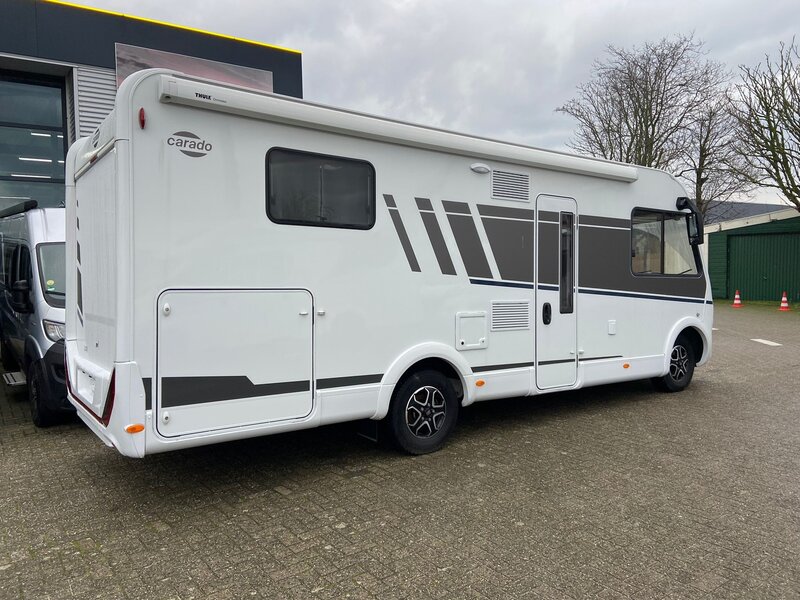 De Carado I 449 is een zeer ruime integraal camper met 4 volwaardige slaapplaatsen. Het Queensbed is een zeer comfortabel tweepersoonsbed waar je beide heel eenvoudig instapt. Het hefbed aan de voorzijde zakt in de cabine ver naar beneden en is hierdoor ook gemakkelijk om in te stappen. Deze I 449 heeft ook veel leef- en bewegingsruimte . Ruime keuken, separate douche- en toiletruimte en natuurlijk een heerlijke zitgroep. Aan alles is in deze I 449 gedacht.