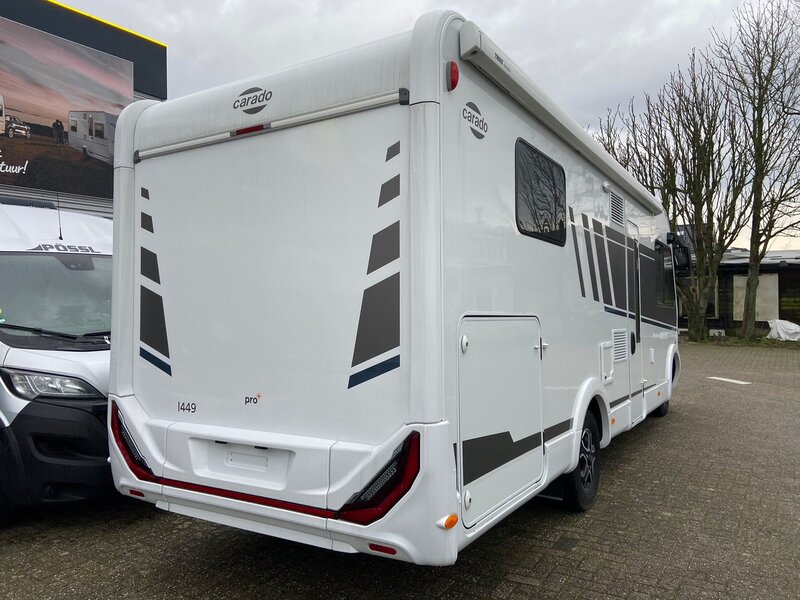 De Carado I 449 is een zeer ruime integraal camper met 4 volwaardige slaapplaatsen. Het Queensbed is een zeer comfortabel tweepersoonsbed waar je beide heel eenvoudig instapt. Het hefbed aan de voorzijde zakt in de cabine ver naar beneden en is hierdoor ook gemakkelijk om in te stappen. Deze I 449 heeft ook veel leef- en bewegingsruimte . Ruime keuken, separate douche- en toiletruimte en natuurlijk een heerlijke zitgroep. Aan alles is in deze I 449 gedacht.