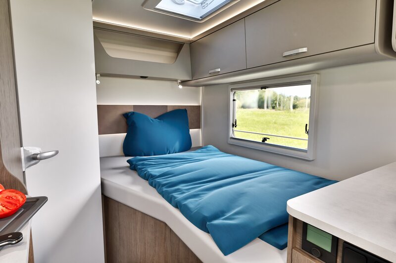 De Carado T 135 bewijst dat compact reizen en comfortabel wonen perfect samengaan. Met een lengte van slechts 596 cm is deze camper bijzonder wendbaar en eenvoudig te parkeren. Ideaal voor smalle straatjes, pittoreske dorpjes en de mooiste landweggetjes. Binnenin ervaar je juist ruimte en overzicht. De slimme indeling met een frans bed en een toiletruimte in de hoek zorgt voor veel bewegingsvrijheid, zonder hoge obstakels en met volledig doorzicht door de camper. Dit maakt de T 135 niet alleen praktisch, maar ook prettig om in te verblijven.