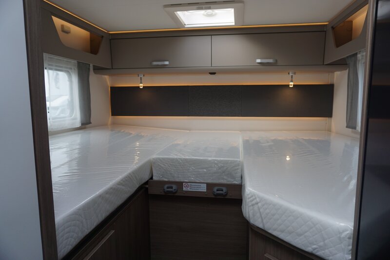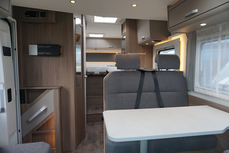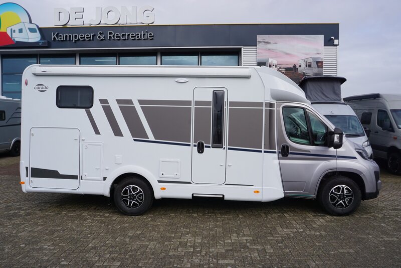 De nieuwe Carado T 328 is een stijlvolle half-integraal camper die comfort en ruimte perfect combineert. Dankzij de enkele bedden, die moeiteloos zijn om te vormen tot één royaal tweepersoonsbed, geniet je altijd van een heerlijke nachtrust. Onder de bedden bevindt zich bovendien een zeer ruime garage, ideaal voor al je bagage en reisbenodigdheden.