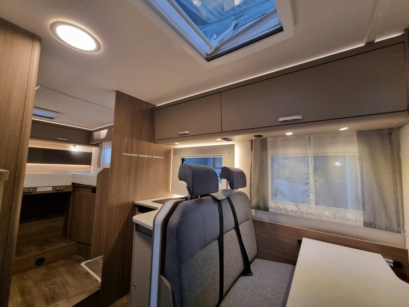 De Carado T 447 Edition26 is een zeer complete camper met enkele bedden en een separatie douche- en toiletruimte. Hiernaast zijn de bed lengte van 212 cm respectievelijk 210 cm en de stahoogte van 210 cm vrij uniek.