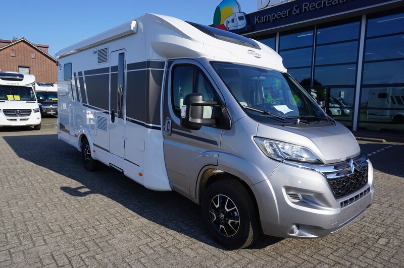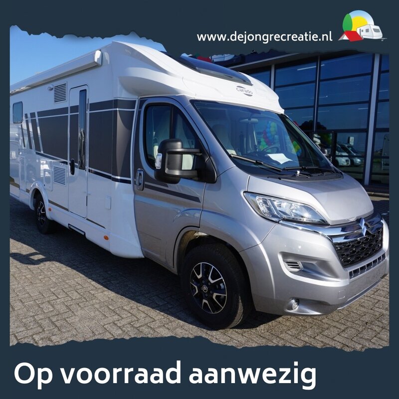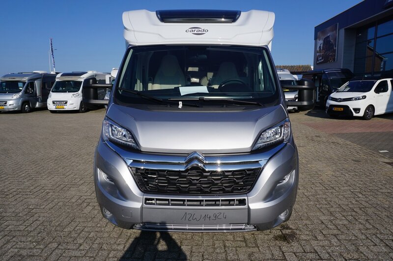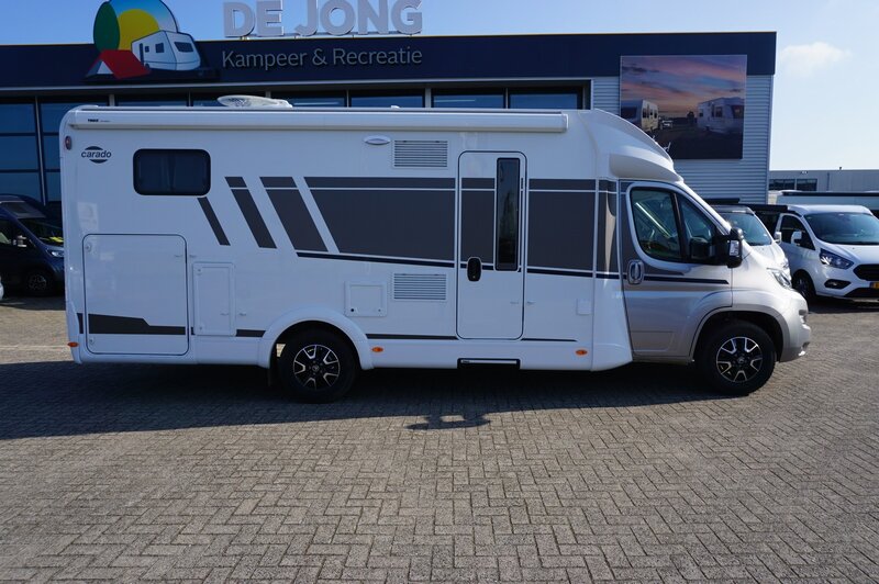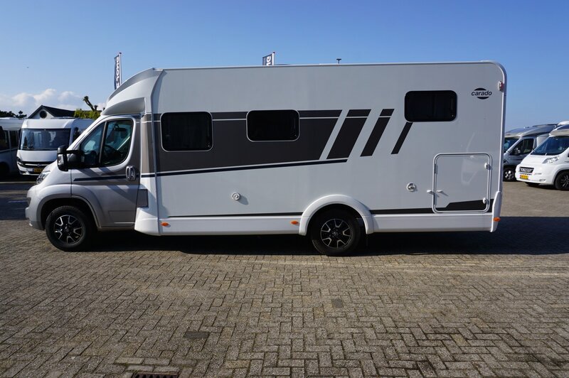 Deze zeer complete Carado is modern en ruim. Van de enkele bedden achter maak je heel snel een zeer comfortabel groot twee persoons bed van en op het hef bed welke zeer eenvoudig naar beneden komt slapen ook 2 volwassenen zeer comfortabel. Mocht er nog een logé zijn dan is de zitgroep ook nog om te bouwen naar extra slaapplaats. Naast voldoende slaapplaats biedt deze complete Carado een aparte douche- en toiletruimte, een heerlijke zitgroep, prima keuken en een grote garage onder de enkele bedden. Het complete Pro+ pakket maakt deze Carado zeer compleet. Ook binnen kort gaan genieten van het heerlijke camper gevoel kom naar onze showroom en/of neem contact op met onze verkoopadviseurs.