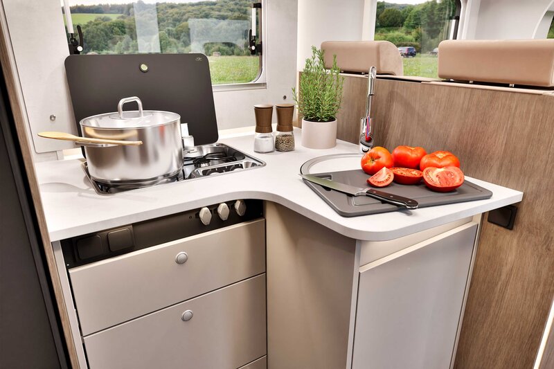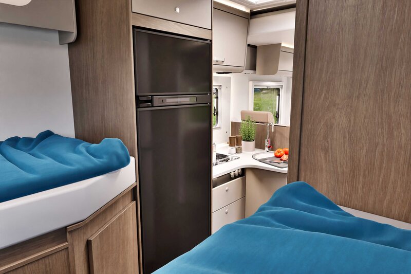 De Carado T 448 is ontworpen voor maximale flexibiliteit. Achterin vind je comfortabele enkele bedden die eenvoudig zijn samen te voegen tot een royaal tweepersoonsbed. Daarnaast beschikt deze camper over een hefbed, waardoor hij zeer geschikt is voor zowel reizen met z’n tweeën als met het hele gezin.