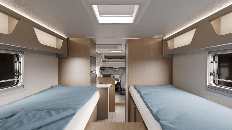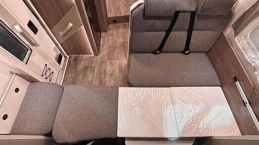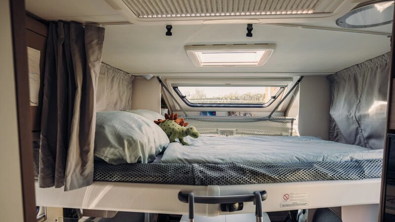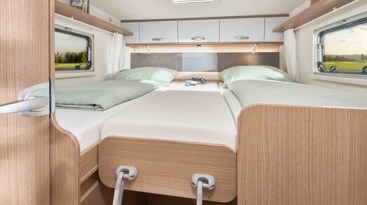Achterin bevinden zich comfortabele enkele bedden die eenvoudig om te bouwen zijn tot een groot tweepersoonsbed. Daarnaast beschikt de camper over een praktisch hefbed.