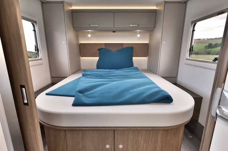 De enkele bedden achterin bieden veel slaapcomfort en zijn ideaal gepositioneerd voor een goede nachtrust. Dankzij de royale afmetingen, de slimme indeling en de rustige uitstraling van het interieur voelt deze camper direct als een tweede thuis.