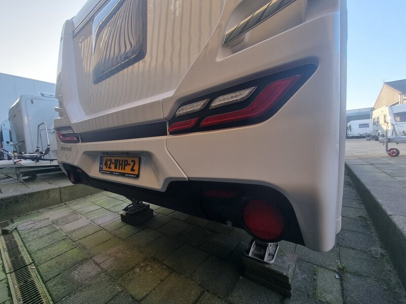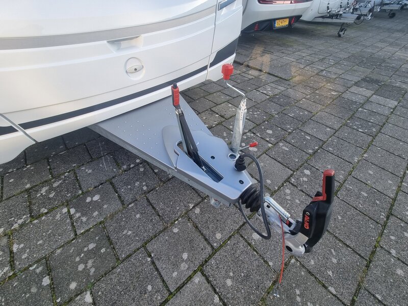 > E & P levelsysteem voor zeer accurate nivellering van uw caravan, bedieningspaneel aanwezig om de hoek van deuropening.