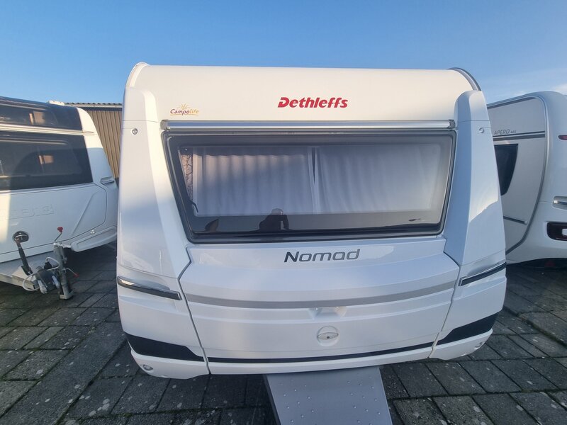 Deze bijzonder in nieuwstaat verkerende ruime Dethleffs Nomad 650 RQT 2023 met een overdwars geplaatst queensbed, extreem ruime rondzit en badkamer over de gehele breedte van de caravan achterin geplaatst. Qua indeling absoluut een topper, met onder het grote queensbed van 155 x 200 cm en riante opbergruimte voor al uw spullen.