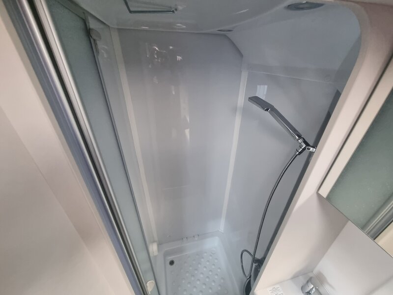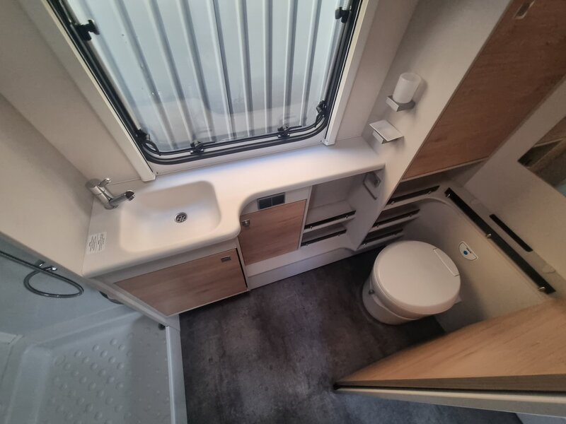 De aparte toiletruimte en douche zorgen voor extra comfort, ook tijdens langere vakanties zoals bijvoorbeeld kamperen op een seizoensplek. Tip: Met behulp van een citywateraansluitig kunt een constante cyclus van douche wateraanvoer realiseren.