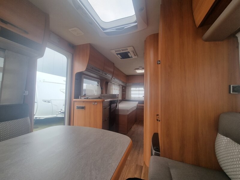 De caravan beschikt over een ruime rondzit aan de voorzijde, welke eenvoudig om te bouwen is tot extra slaapplaats of voor meerdere mensen.